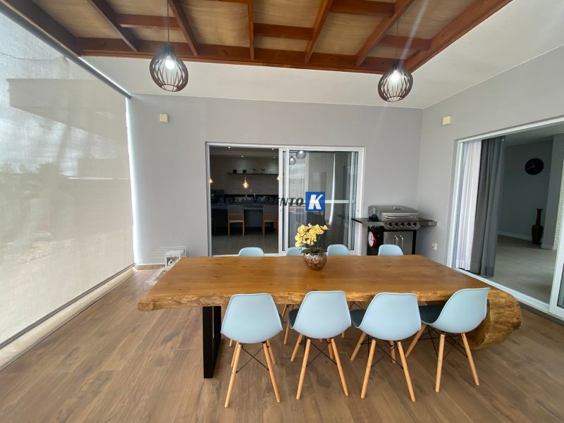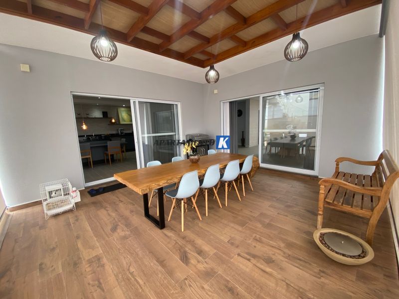 Sala de jantar ampla com integração à cozinha e ao espaço gourmet
